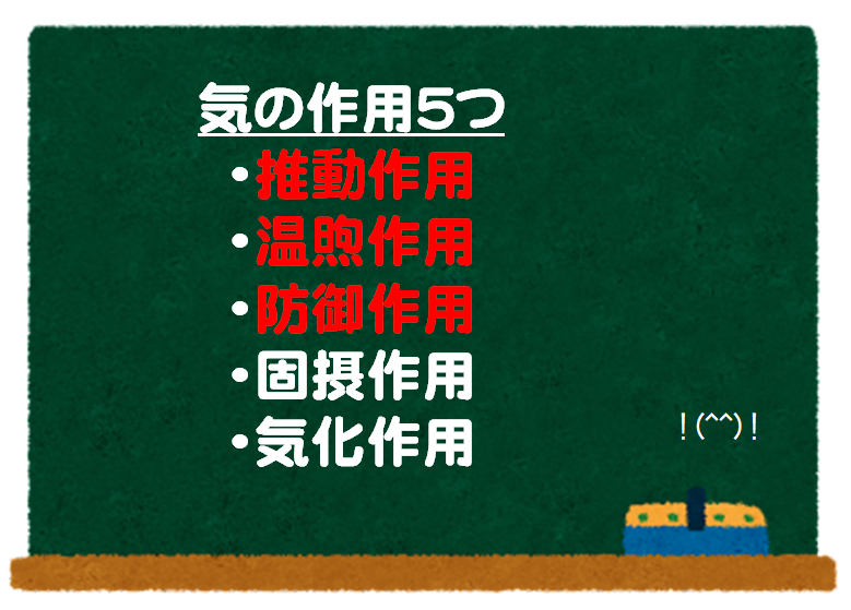 気の作用には5つあるとされています。今回はそのうちの3つについて紹介します。