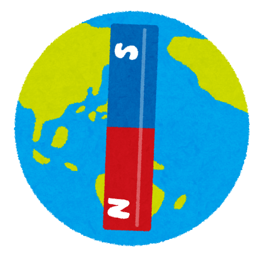 理科の授業で学びましたが、方位磁針はN極が北を指し、S極が南を指し示します。(つまり地球の北はS極で南はN極)このことからわかりますが、地球自体が一つの磁石であるということになります。